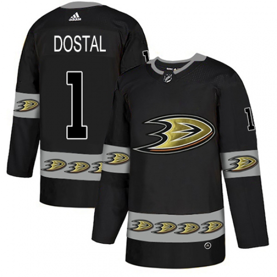 Men's Adidas Anaheim Ducks #1 Lukas Dostal Premier Black Team Logo Fashion NHL Jersey