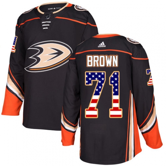 >Men's Adidas Anaheim Ducks #71 J.T. Brown Authentic Black USA Flag Fashion NHL Jersey