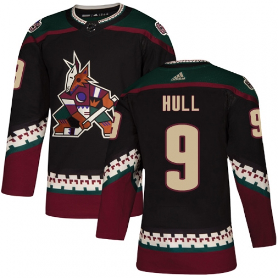 Men's Adidas Arizona Coyotes #9 Bobby Hull Authentic Black Team Logo Fashion NHL Jersey