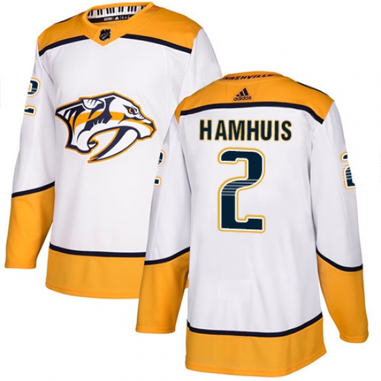 >Men's Adidas Nashville Predators #2 Dan Hamhuis Authentic White Away NHL Jersey