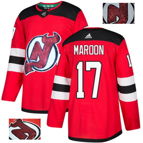 Men's Adidas New Jersey Devils #17 Patrick Maroon Authentic Red Fashion Gold NHL Jersey