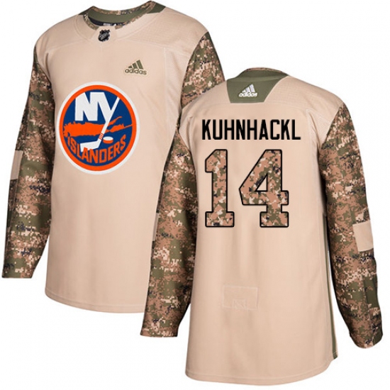 Men's Adidas New York Islanders #14 Tom Kuhnhackl Authentic Camo Veterans Day Practice NHL Jersey