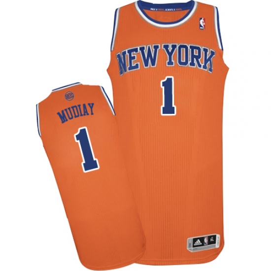 Home>NBA>New York Knicks>Emmanuel Mudiay>Men's Adidas New York Knicks #1 Emmanuel Mudiay Authentic Orange Alternate NBA Jersey
