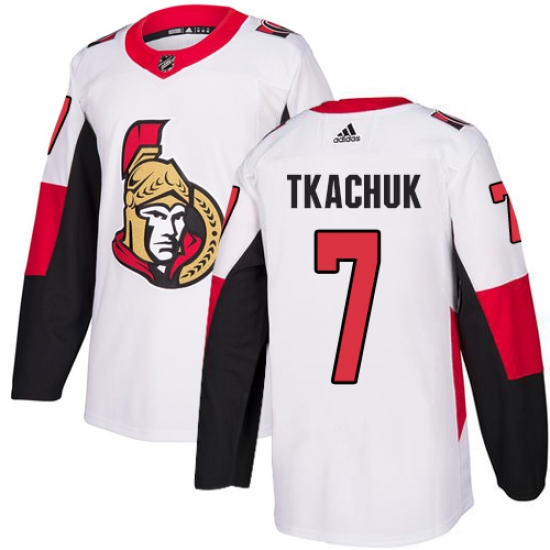 >Men's Adidas Ottawa Senators #7 Brady Tkachuk Authentic White Away NHL Jersey