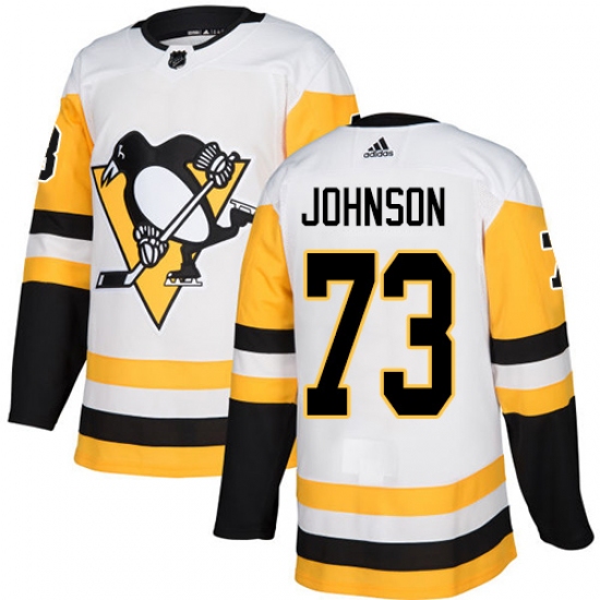 >Men's Adidas Pittsburgh Penguins #73 Jack Johnson Authentic White Away NHL Jersey