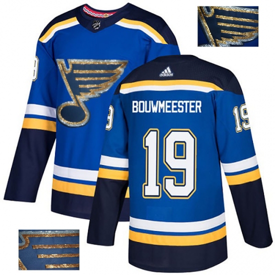 Men's Adidas St. Louis Blues #19 Jay Bouwmeester Authentic Royal Blue Fashion Gold NHL Jersey