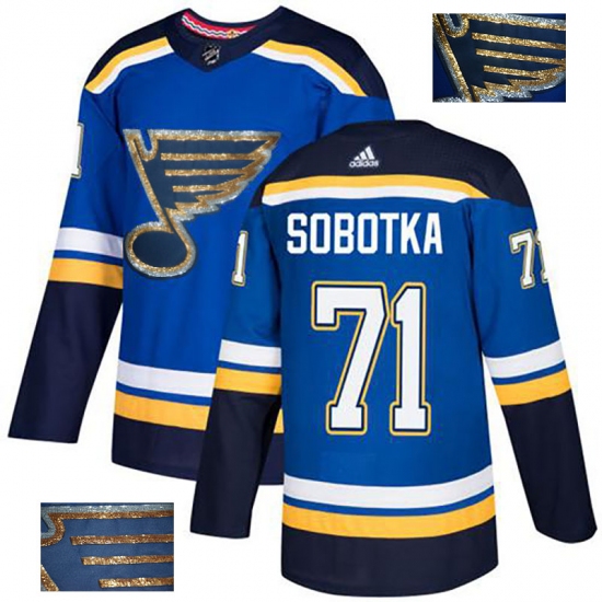Men's Adidas St. Louis Blues #71 Vladimir Sobotka Authentic Royal Blue Fashion Gold NHL Jersey
