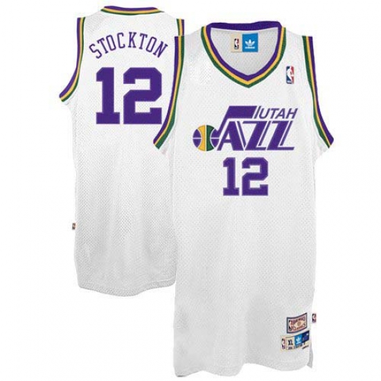 Men's Adidas Utah Jazz #12 John Stockton Authentic White Throwback NBA Jersey