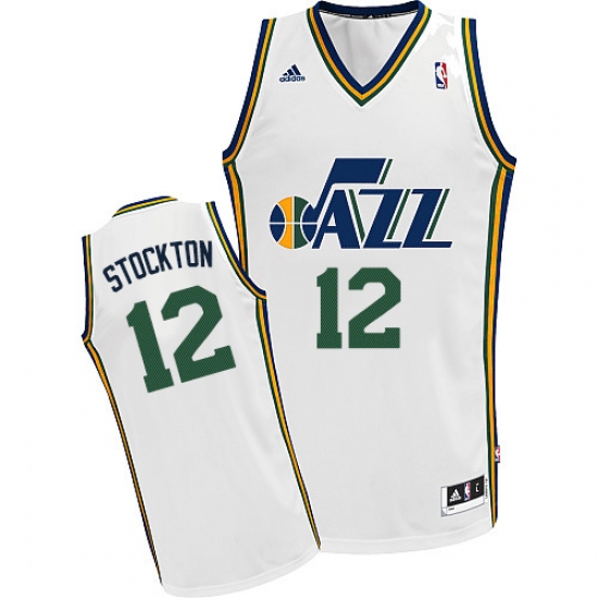 Men's Adidas Utah Jazz #12 John Stockton Swingman White Home NBA Jersey