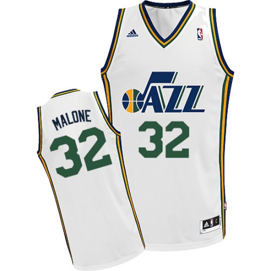 Home>NBA>Utah Jazz>Karl Malone>Men's Adidas Utah Jazz #32 Karl Malone Swingman White Home NBA Jersey