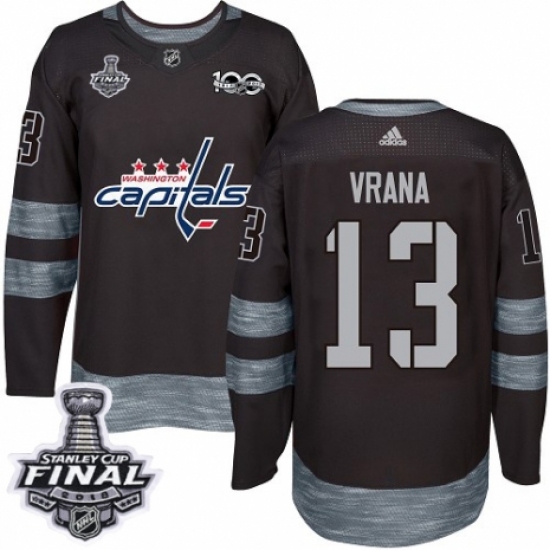 Men's Adidas Washington Capitals #13 Jakub Vrana Authentic Black 1917-2017 100th Anniversary 2018 Stanley Cup Final NHL Jersey