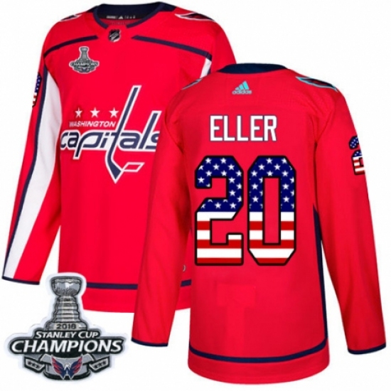 Men's Adidas Washington Capitals #20 Lars Eller Authentic Red USA Flag Fashion 2018 Stanley Cup Final Champions NHL Jersey