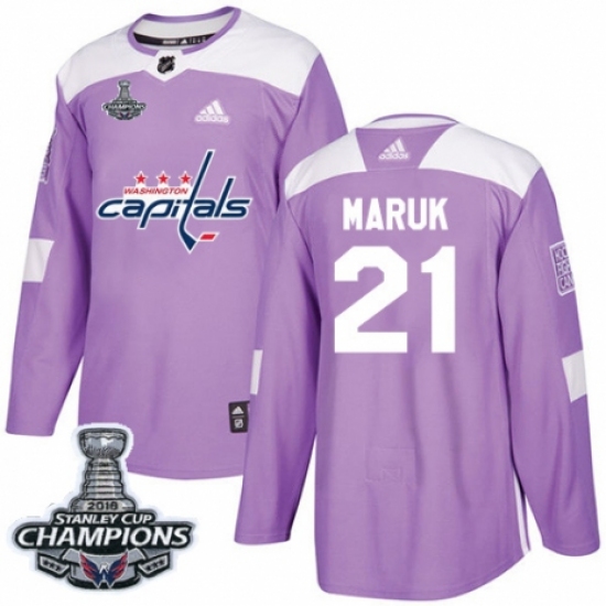 >Men's Adidas Washington Capitals #21 Dennis Maruk Authentic Purple Fights Cancer Practice 2018 Stanley Cup Final Champions NHL Jersey