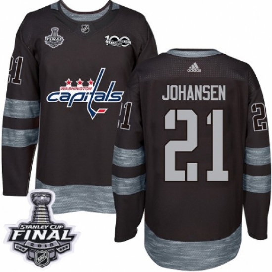 Men's Adidas Washington Capitals #21 Lucas Johansen Authentic Black 1917-2017 100th Anniversary 2018 Stanley Cup Final NHL Jersey