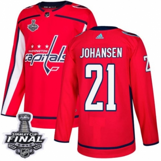 Men's Adidas Washington Capitals #21 Lucas Johansen Premier Red Home 2018 Stanley Cup Final NHL Jersey
