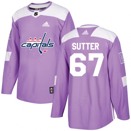 >Men's Adidas Washington Capitals #67 Riley Sutter Authentic Purple Fights Cancer Practice NHL Jersey