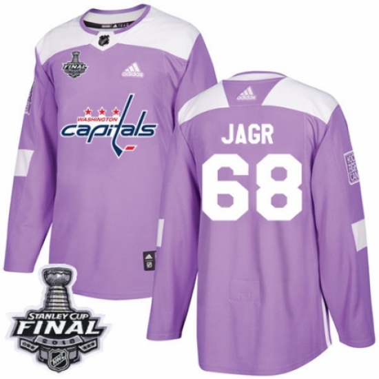 >Men's Adidas Washington Capitals #68 Jaromir Jagr Authentic Purple Fights Cancer Practice 2018 Stanley Cup Final NHL Jersey