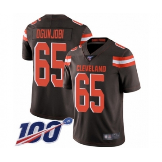 Men's Cleveland Browns #65 Larry Ogunjobi Brown Team Color Vapor Untouchable Limited Player 100th Season Football Jersey