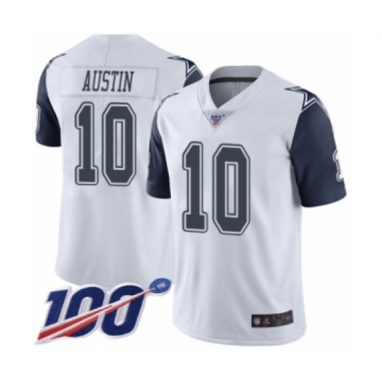 >Men's Dallas Cowboys #10 Tavon Austin Limited White Rush Vapor Untouchable 100th Season Football Jersey