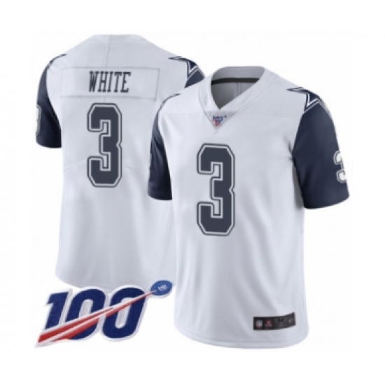 >Men's Dallas Cowboys #3 Mike White Limited White Rush Vapor Untouchable 100th Season Football Jersey
