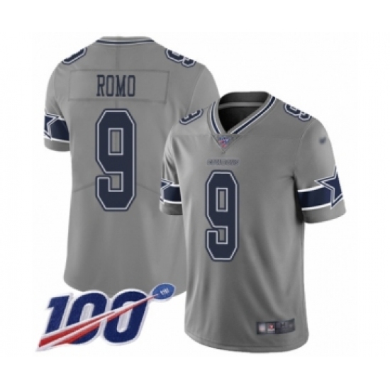 Men's Dallas Cowboys #9 Tony Romo Limited Gray Inverted Legend 100th Season Football Jersey