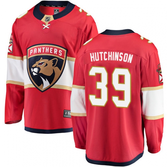 >Men's Florida Panthers #39 Michael Hutchinson Authentic Red Home Fanatics Branded Breakaway NHL Jersey