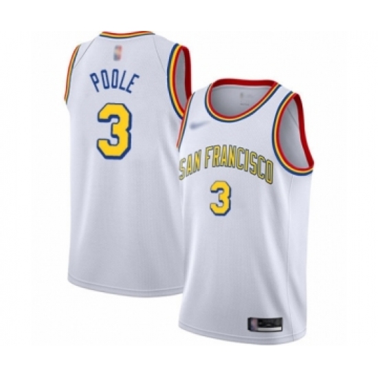 >Men's Golden State Warriors #3 Jordan Poole Authentic White Hardwood Classics Basketball Jersey - San Francisco Classic Edition