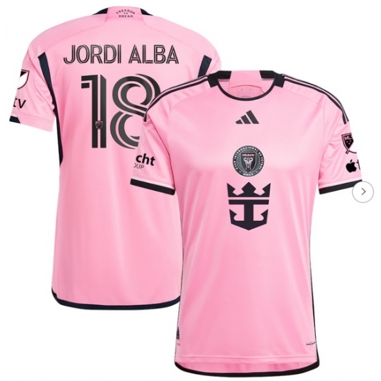 Men's Inter Miami CF #18 Jordialba 2023-24 Pink Home Soccer Jersey Suit