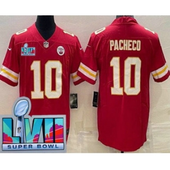 >Men's Kansas City Chiefs #10 Isiah Pacheco Limited Red Super Bowl LVII Vapor Jersey