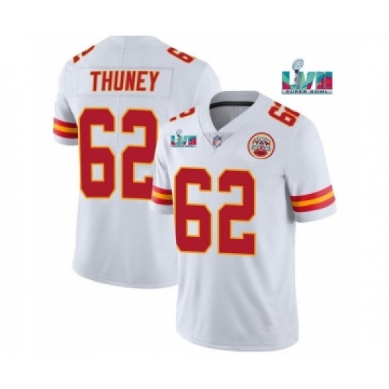 >Men’s Kansas City Chiefs #62 Joe Thuney White Super Bowl LVII Patch Vapor Untouchable Limited Stitched Jersey