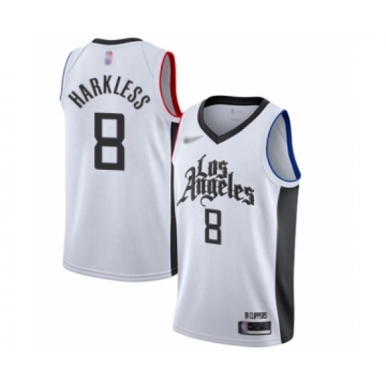 >Men's Los Angeles Clippers #8 Moe Harkless Swingman White Basketball Jersey - 2019 20 City Edition