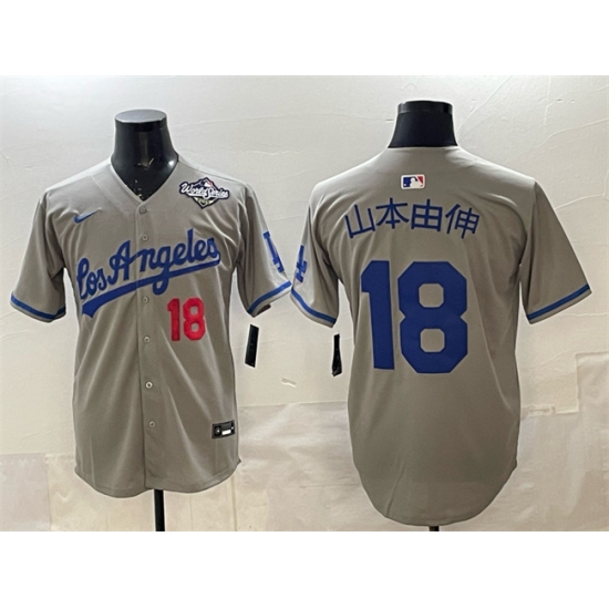 >Men's Los Angeles Dodgers #18 山本由伸 Grey 2025 World Series Limited Stitched Baseball Jersey