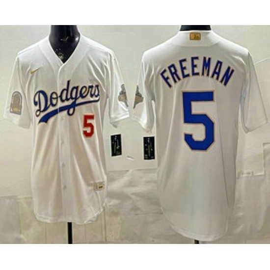 Men's Los Angeles Dodgers #5 Freddie Freeman White Gold World Series Champions Collection Limited Jersey
