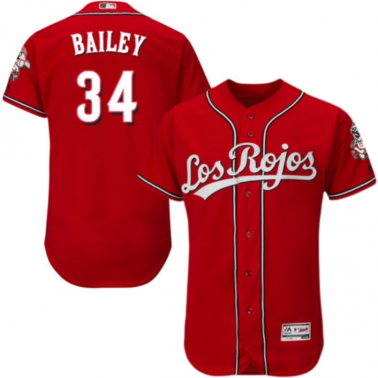 Men's Majestic Cincinnati Reds #34 Homer Bailey Red Los Rojos Flexbase Authentic Collection MLB Jersey