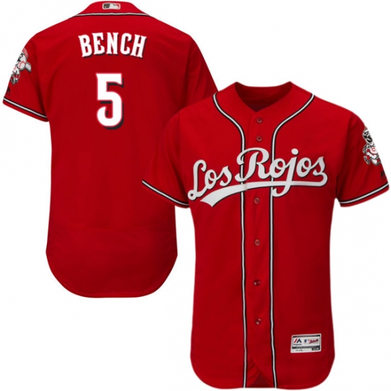 Home>MLB>Cincinnati Reds>Johnny Bench>Men's Majestic Cincinnati Reds #5 Johnny Bench Red Los Rojos Flexbase Authentic Collection MLB Jersey