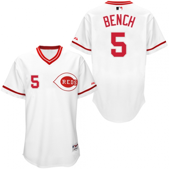 Men's Majestic Cincinnati Reds #5 Johnny Bench Replica White 1990 Turn Back The Clock MLB Jersey