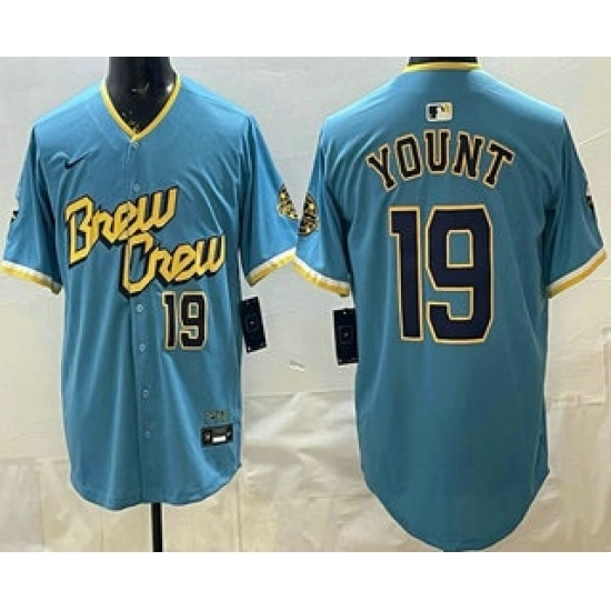 Men's Milwaukee Brewers #19 Robin Yount Powder Blue City Connect With Home & Bob Uecker Limited Stitched Baseball Jersey
