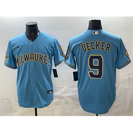 >Men's Milwaukee Brewers #9 Bob Uecker Blue With Home & Bob Uecker Stitched Baseball Jersey