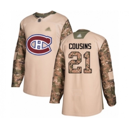 >Men's Montreal Canadiens #21 Nick Cousins Authentic Camo Veterans Day Practice Hockey Jersey