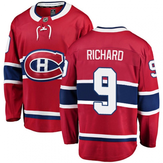 Men's Montreal Canadiens #9 Maurice Richard Authentic Red Home Fanatics Branded Breakaway NHL Jersey