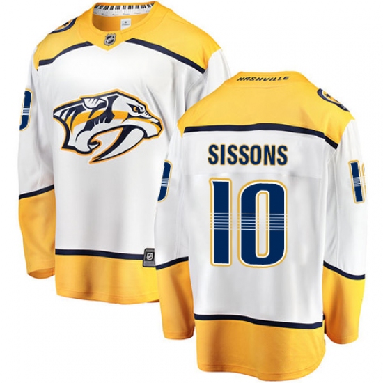 Home>NHL>Nashville Predators>Colton Sissons>Men's Nashville Predators #10 Colton Sissons Fanatics Branded White Away Breakaway NHL Jersey