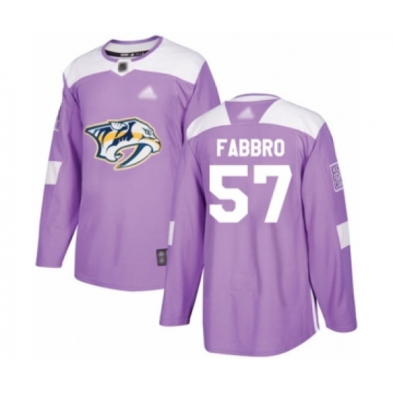 >Men's Nashville Predators #57 Dante Fabbro Authentic Purple Fights Cancer Practice Hockey Jersey