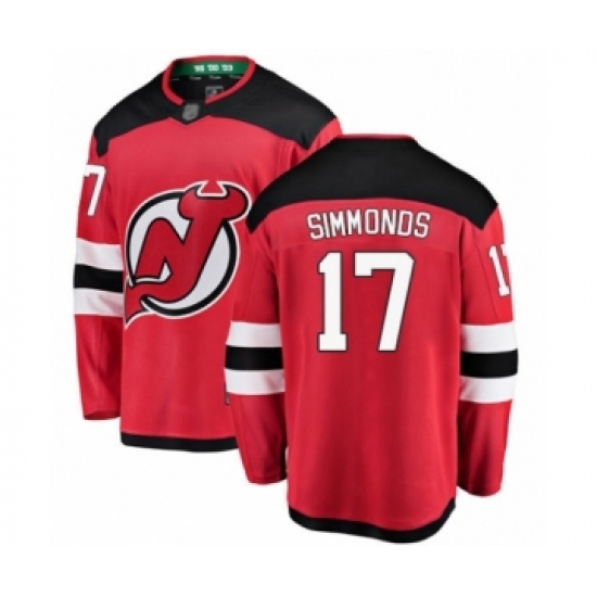 Men's New Jersey Devils #17 Wayne Simmonds Fanatics Branded Red Home Breakaway Hockey Jersey
