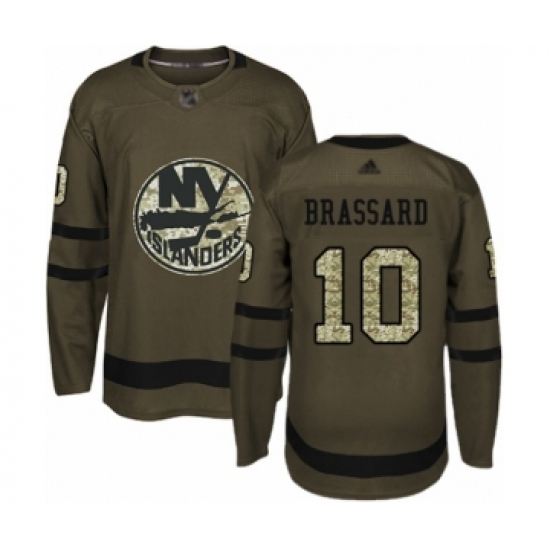 >Men's New York Islanders #10 Derick Brassard Authentic Green Salute to Service Hockey Jersey
