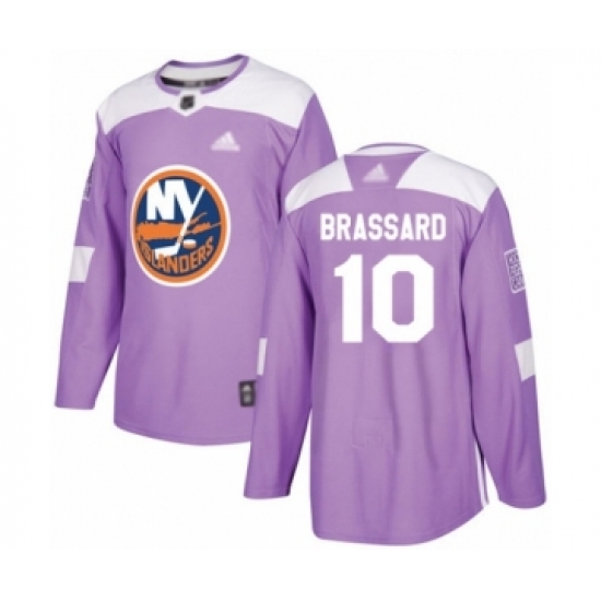 >Men's New York Islanders #10 Derick Brassard Authentic Purple Fights Cancer Practice Hockey Jersey