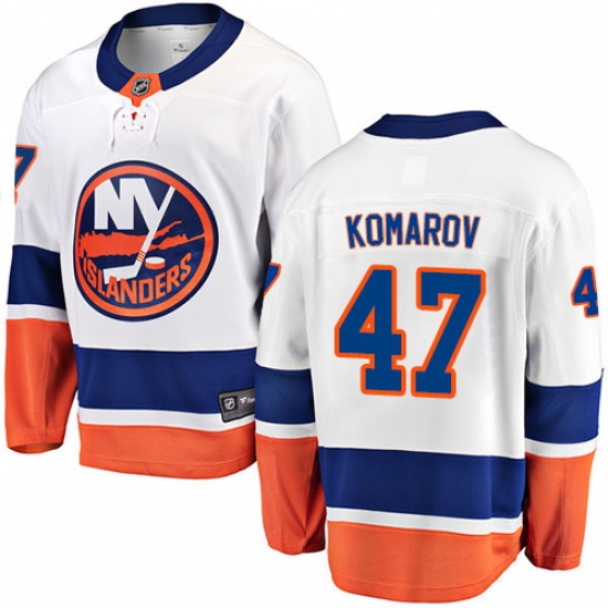 >Men's New York Islanders #47 Leo Komarov Fanatics Branded White Away Breakaway NHL Jersey