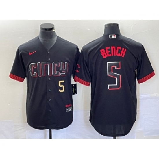 Men's Nike Cincinnati Reds #5 Johnny Bench Number Black 2023 City Connect Cool Base Stitched Baseball Jersey