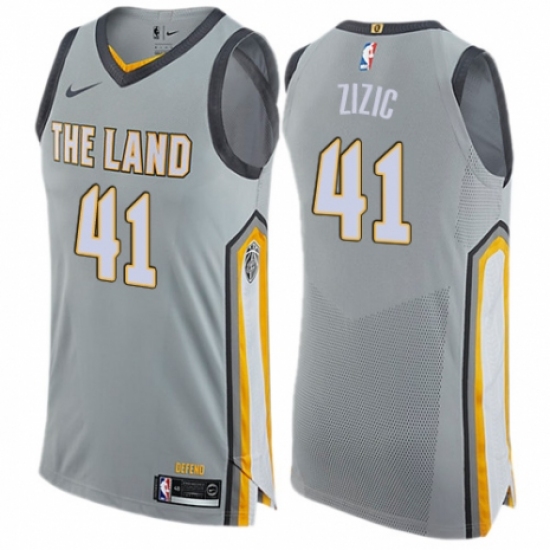 >Men's Nike Cleveland Cavaliers #41 Ante Zizic Authentic Gray NBA Jersey - City Edition