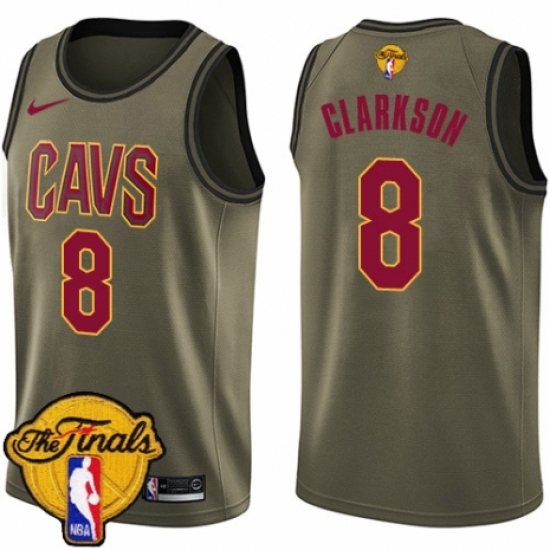Men's Nike Cleveland Cavaliers #8 Jordan Clarkson Swingman Green Salute to Service 2018 NBA Finals Bound NBA Jersey