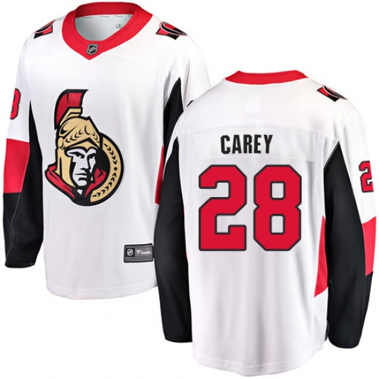 Men's Ottawa Senators #28 Paul Carey Fanatics Branded White Away Breakaway NHL Jersey